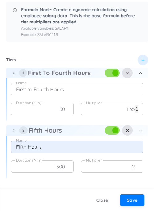 Esto brinda flexibilidad para gestionar la compensación por horas extras según las políticas de la empresa.Overtime -> Payroll: Permite configurar cómo los pagos de horas extras se asignan a los componentes de la nómina.